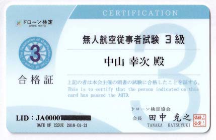 ドローン検定3級の取得ができます